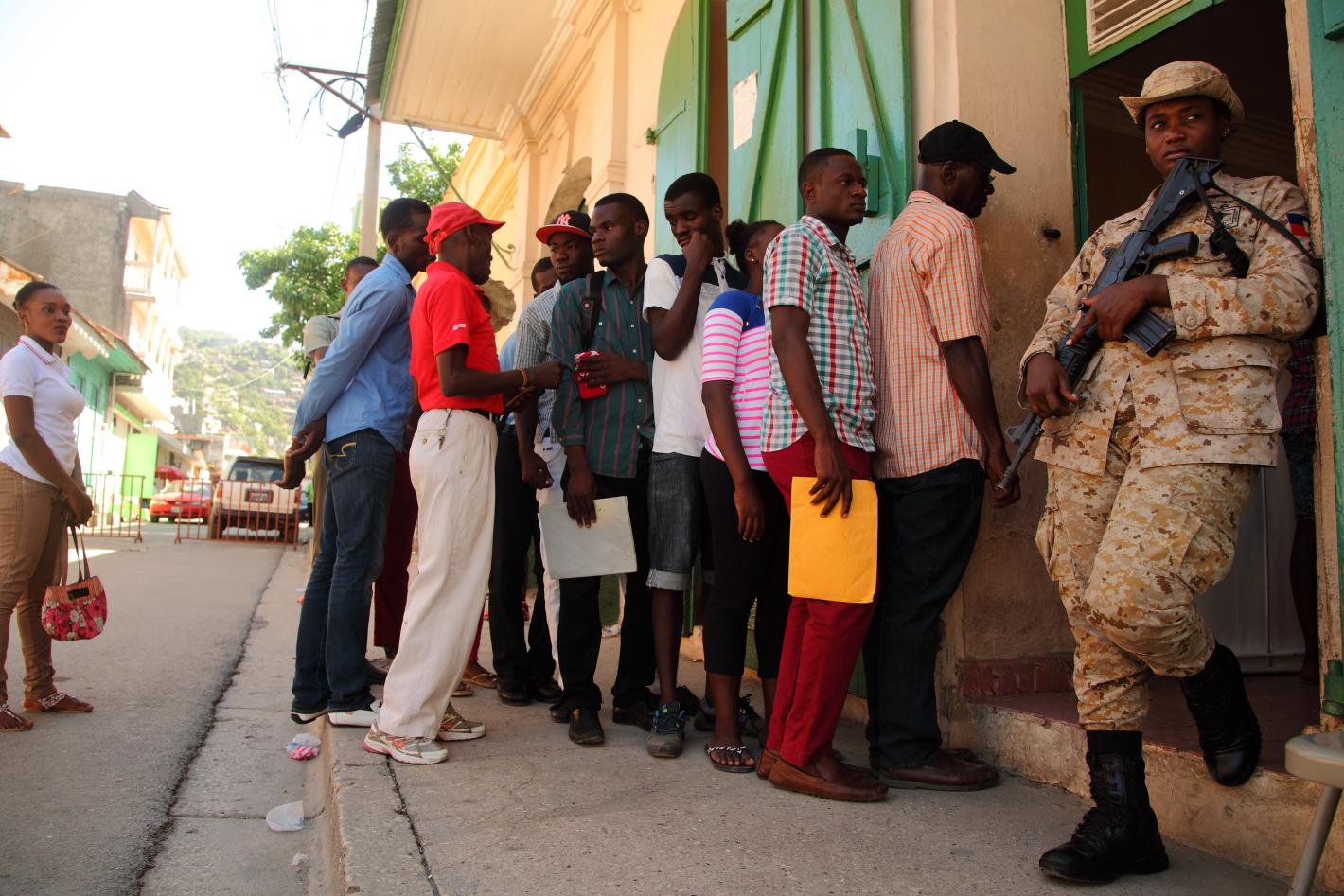 Photo : Logan Abassi - UN/MINUSTAH Carénage, quartier résidentiel au Nord de Cap-Haitien, sous un soleil de plomb, avocats, familles de détenus, marchands ambulants tous alignés le long du mur d’enceinte blanc de 3 mètres de…